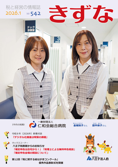 | トピックス | ・令和8年(2026年)新春対談 「デジタル化推進は喫緊の課題」 ・タックスコーナー 八王子税務署からのお知らせ 「確定申告は自宅から!」 「税理士による無料申告相談」 「確定申告会場の開設について」 ・第12回「税に関する絵はがきコンクール」 優秀作品表彰式を開催 |